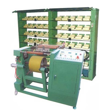 Featuring a positive feeding creel, this warping machine is specially designed for warping of elastic yarns such as spandex yarn and covered rubber threads.